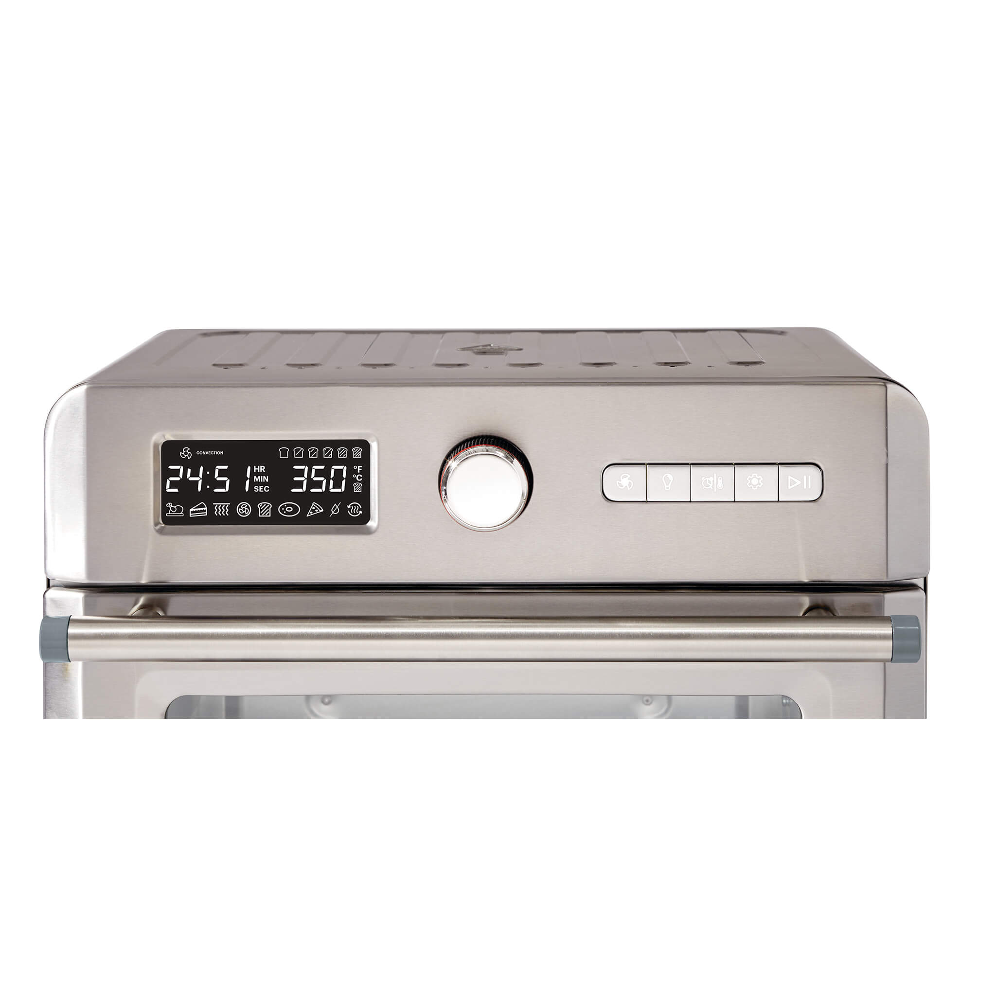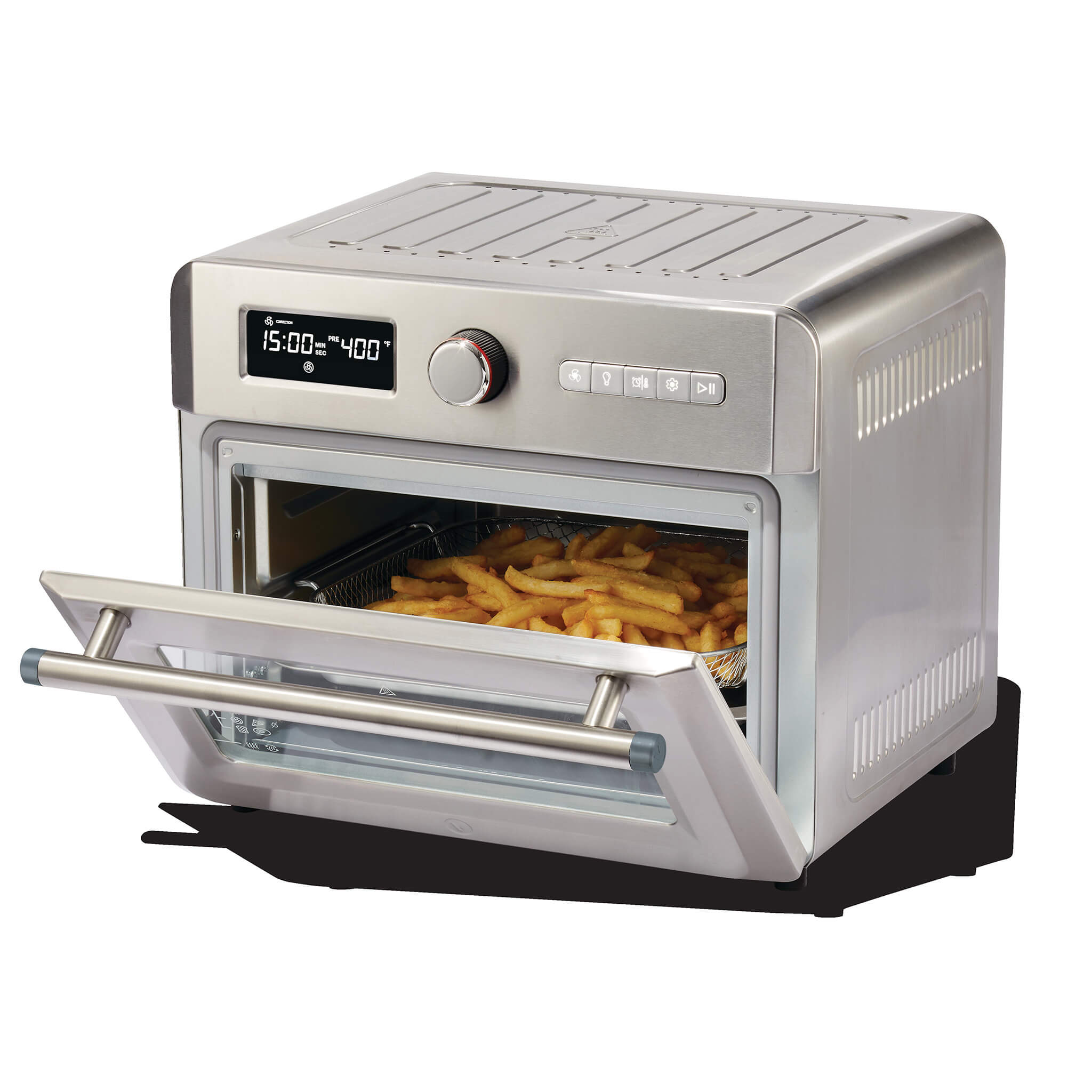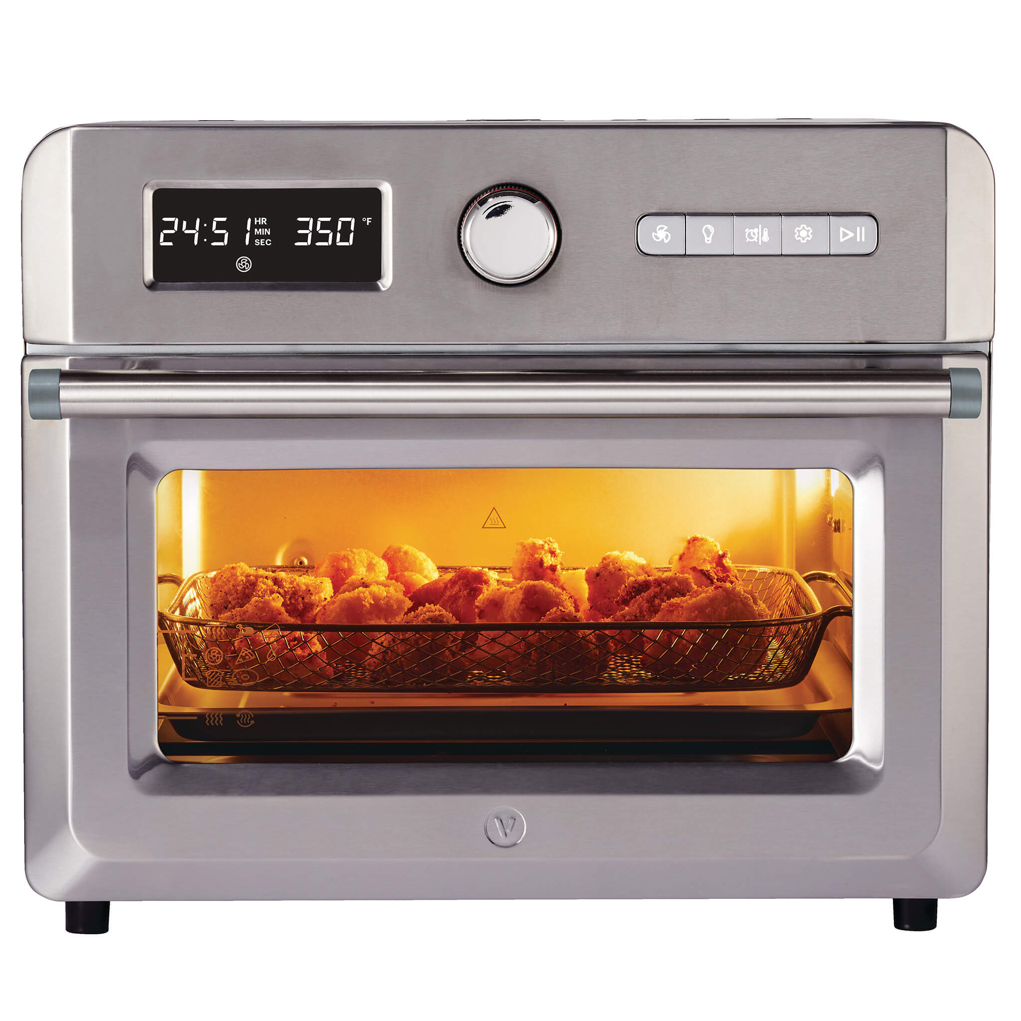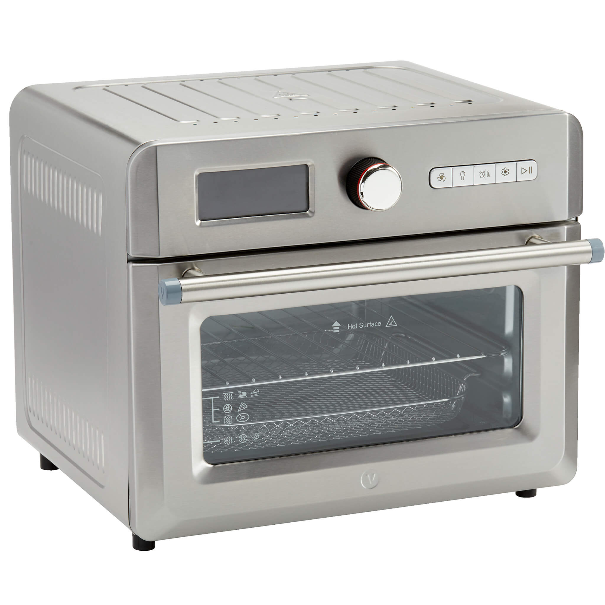 The Vida by PADERNO 6-Slice Toaster Oven with Air Fryer is perfect for baking, roasting, air frying, cooking pizza, toasting and dehydrating. Featuring 12 pre-set cooking functions for the ultimate in versatility. It includes a baking pan, grilling rack, and an air fryer basket that fits up to 4 lb (1.8 kg) of food.